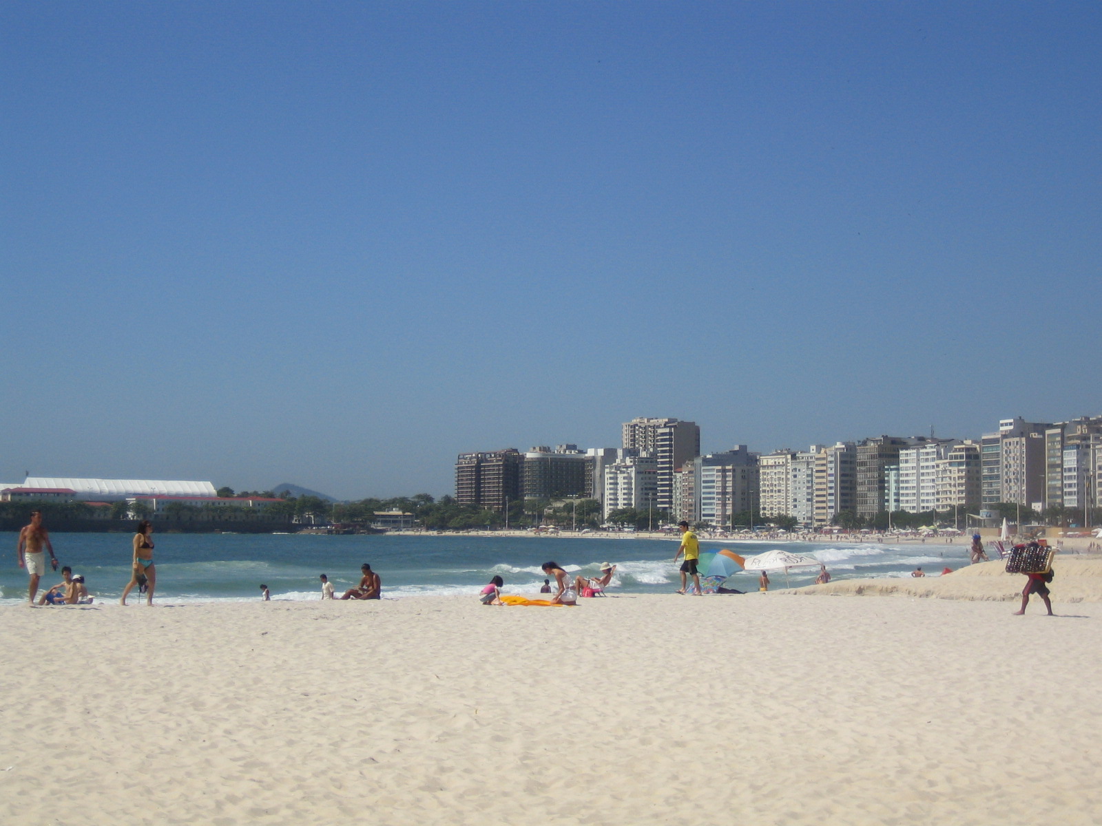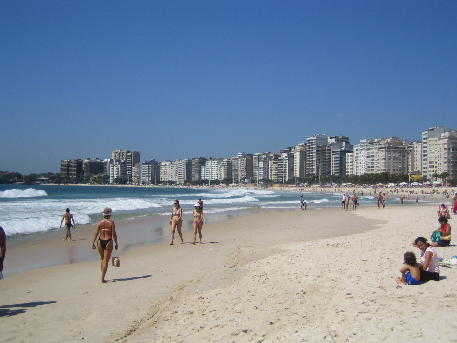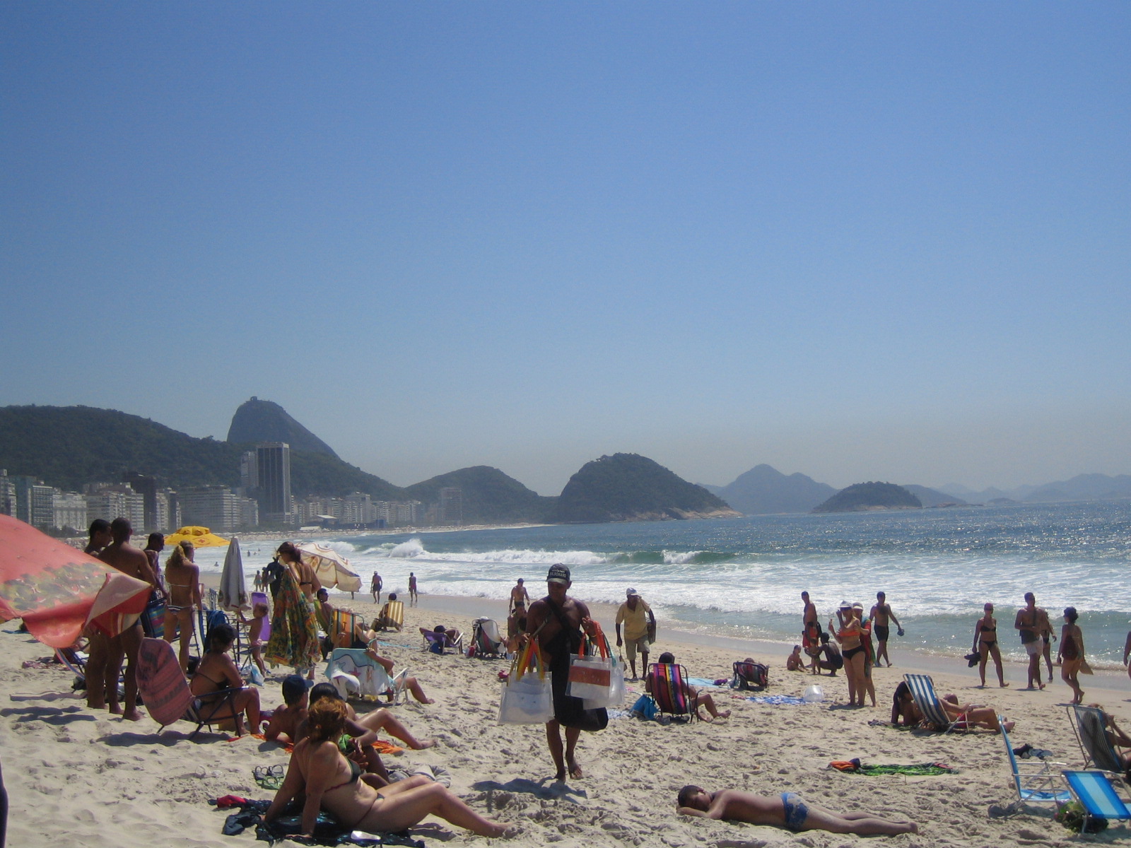 Wir haben uns in Copacabana niedergelassen. Auch wenn der Ort hinreichend bekannt sein duerfte noch einige kurze Worte: Rio de Janeiro ist vor allem durch sein angenehmes Klima und die weissen Straende mit dem lebhaften Beachleben gepraegt. In der Innenstadt gibt es daher kaum Unterkuenfte und auch die wohlhabenderen Brasilianer ziehen in die netten Vororte. Copacabana ist einer dieser Vororte und hat einen beeindruckenden Strand: